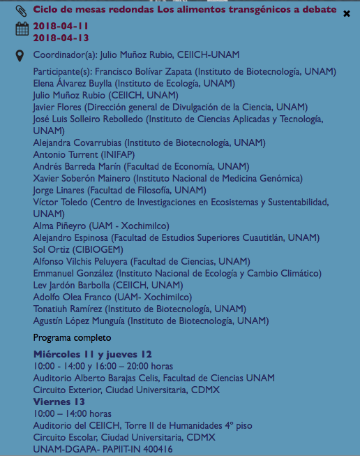 Un gran reconocimiento al logro “casi” imposible de JULIO MUÑOZ RUBIO en el gran auditorio de la Facultad de Ciencias de la UNAM…. el gran DEBATE entre reconocidos investigadores PRO y CONTRA TRANSGENICOS…..!!!!! NO CANCELARON….!!!!