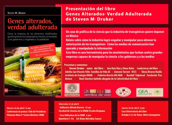 Presentación del Libro GENES ALTERADOS, VERDAD ADULTERADA. de Steven M Druker